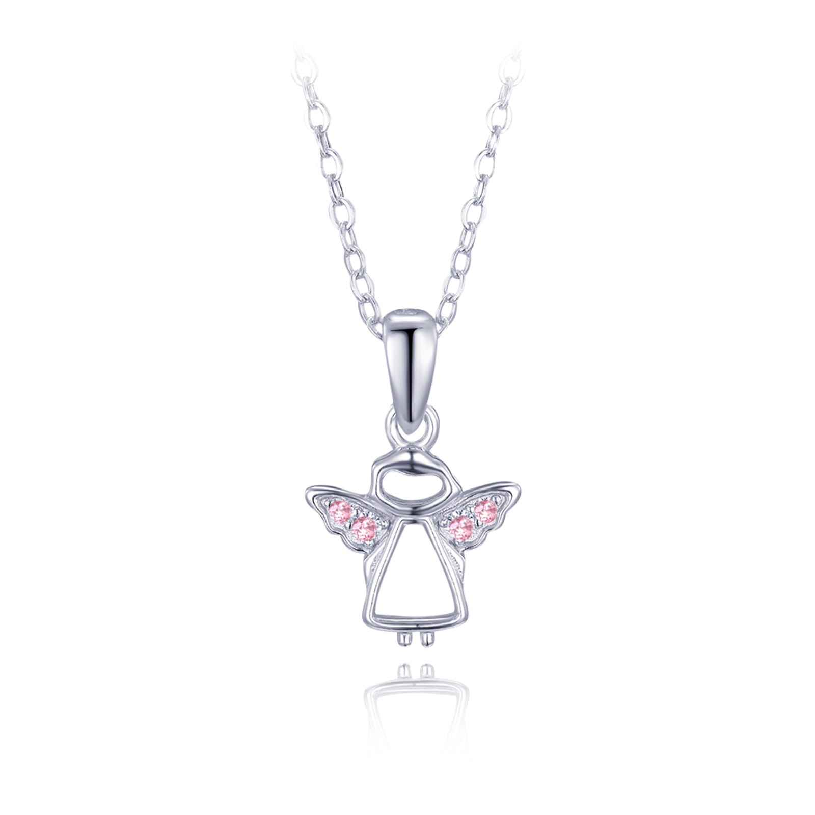 MINET Stříbrný náhrdelník anděl s růžovými zirkony