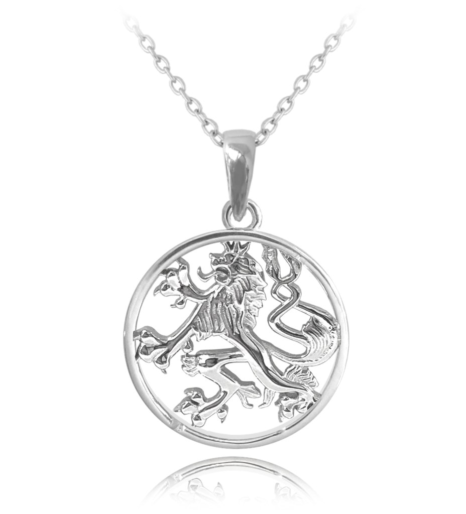 MINET Stříbrný náhrdelník ČESKÝ LEV v kroužku