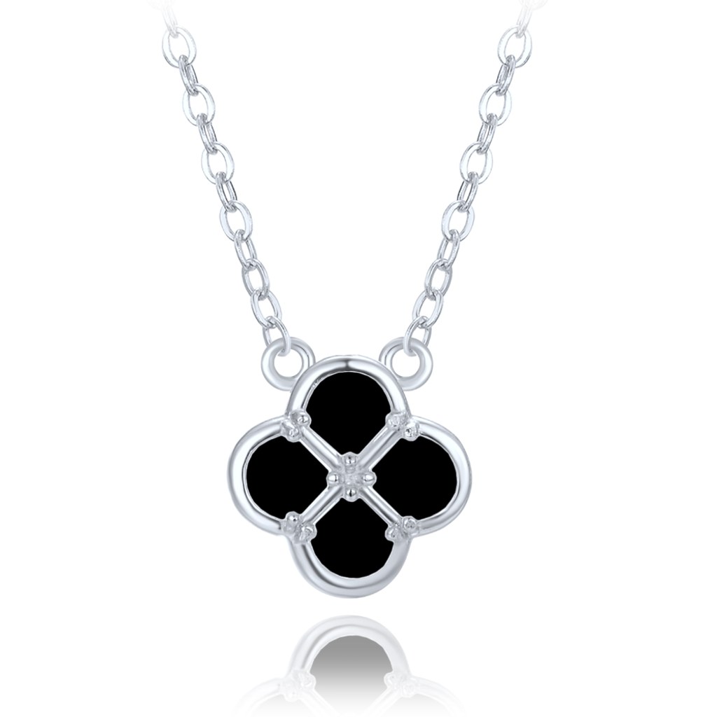 MINET Stříbrný náhrdelník čtyřlístek s černou perletí