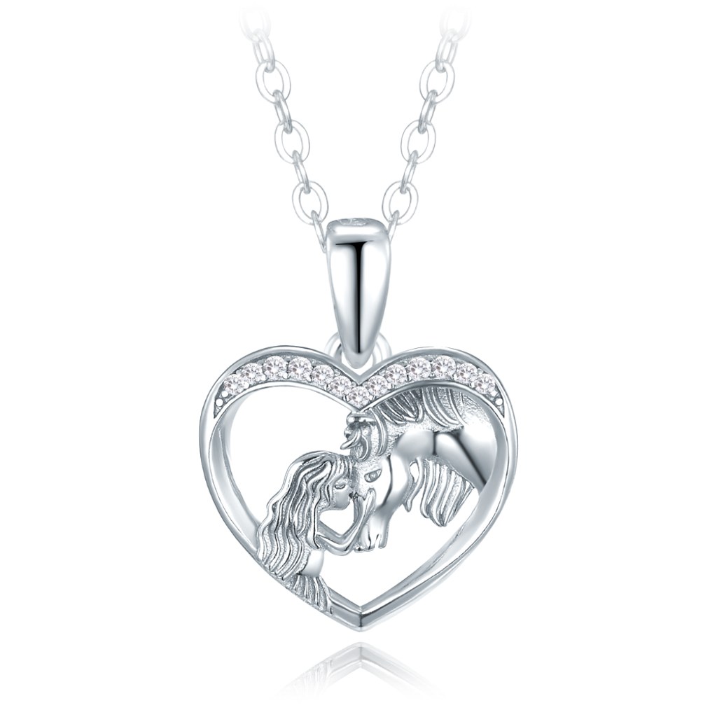 MINET Stříbrný náhrdelník dívka s koněm a bílými zirkony