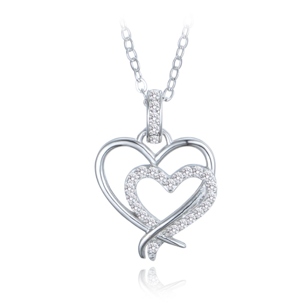 MINET Stříbrný náhrdelník dvojité srdce s bílými zirkony