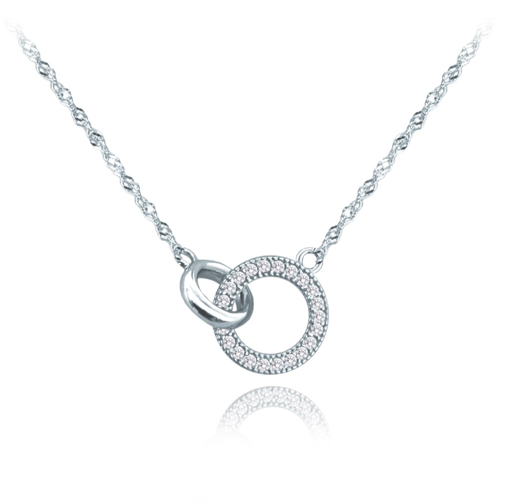 MINET Stříbrný náhrdelník KROUŽEK s bílými zirkony