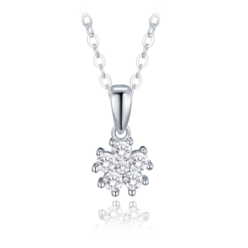 MINET Stříbrný náhrdelník kytička s bílými zirkony