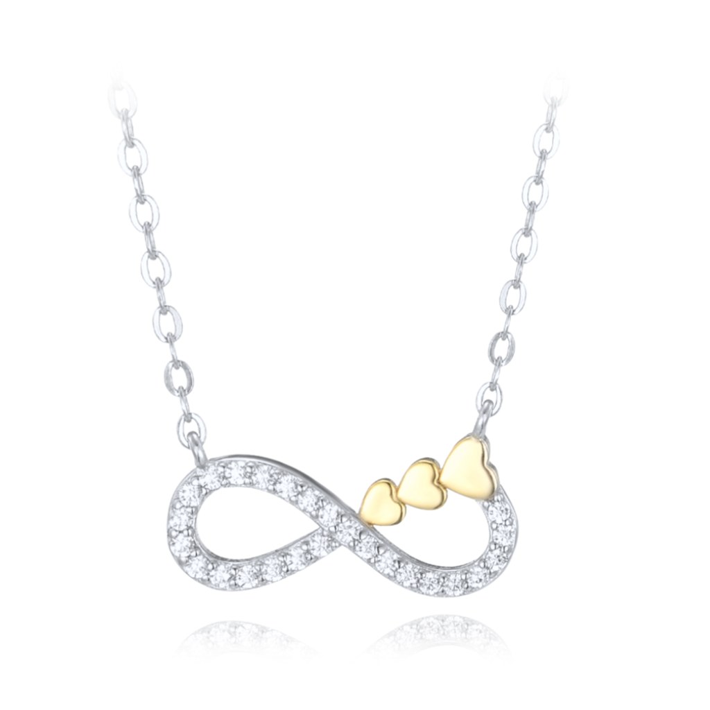 Stříbrný náhrdelník MINET se symbolem nekonečna je odrazem současných trendů. Zajímavě posazené kamínky z něj udělají originální doplněk pro každodenní nošení.