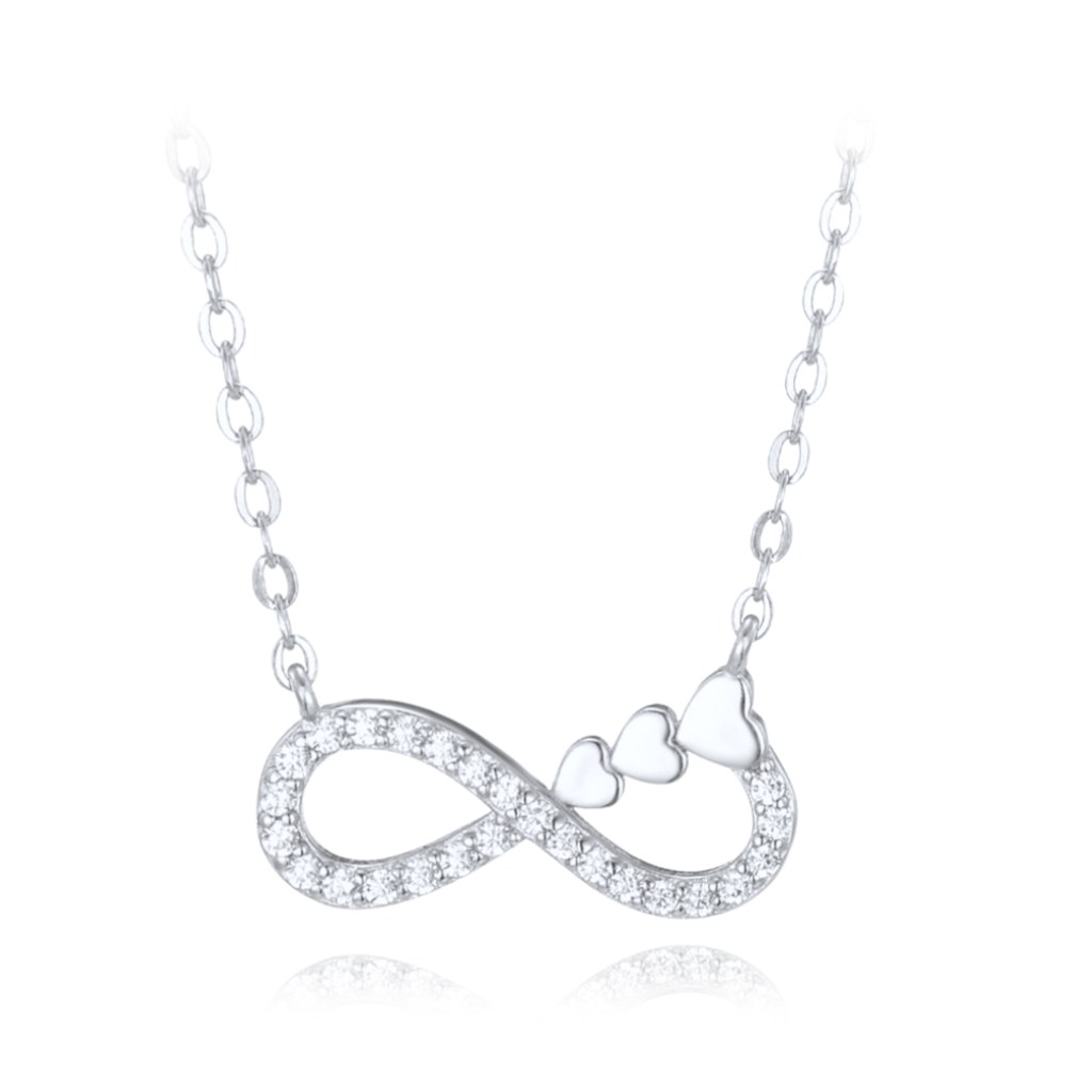 MINET Stříbrný náhrdelník nekonečno se srdíčky a bílými zirkony