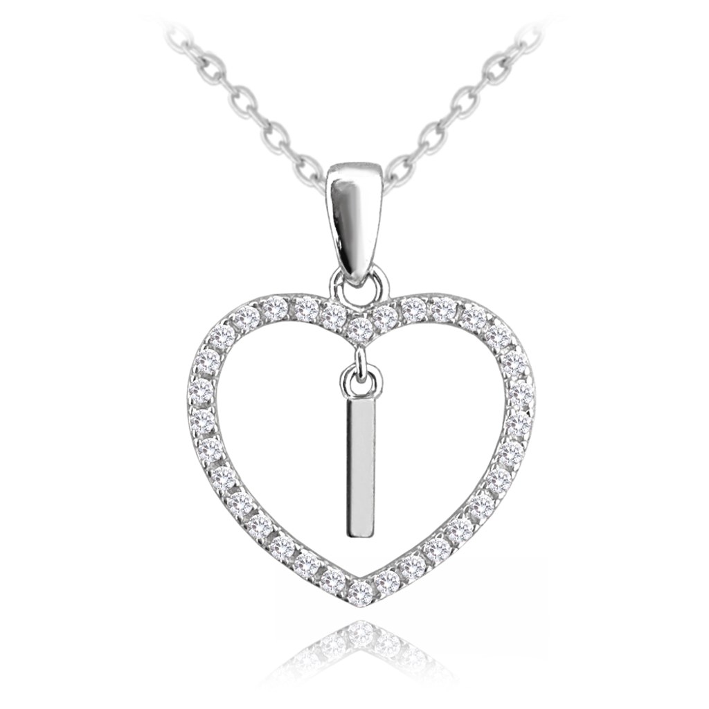 MINET Stříbrný náhrdelník písmeno v srdíčku "I" se zirkony
