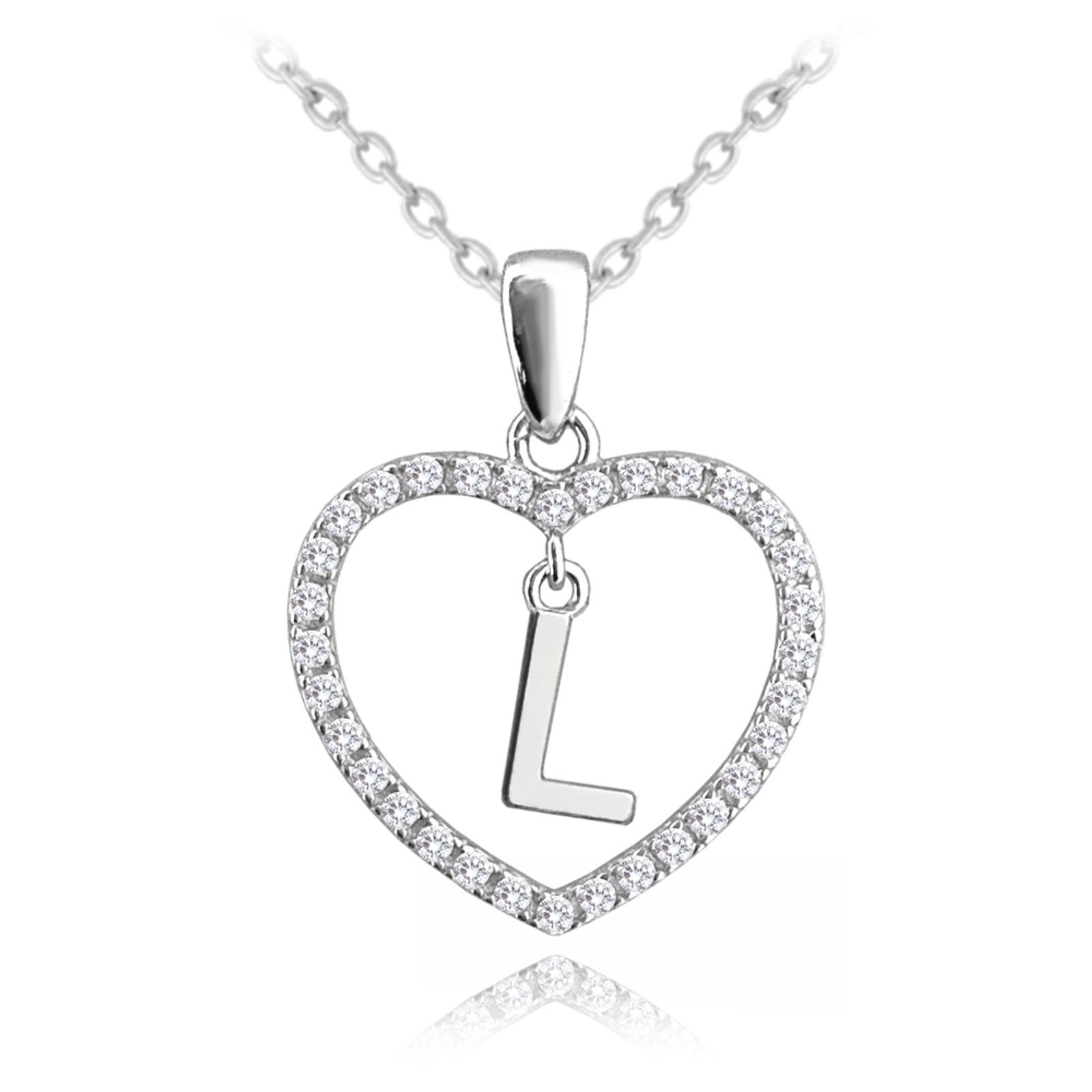 MINET Stříbrný náhrdelník písmeno v srdíčku "L" se zirkony