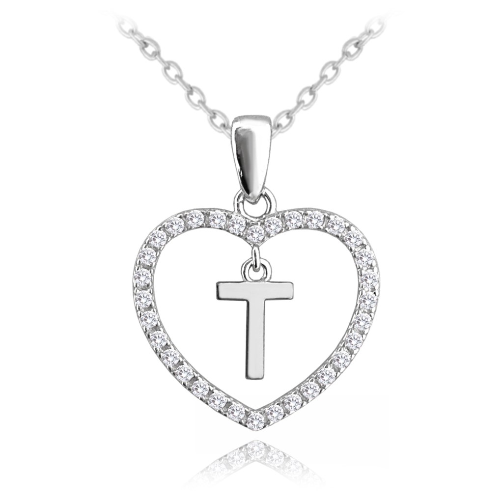 MINET Stříbrný náhrdelník písmeno v srdíčku "T" se zirkony