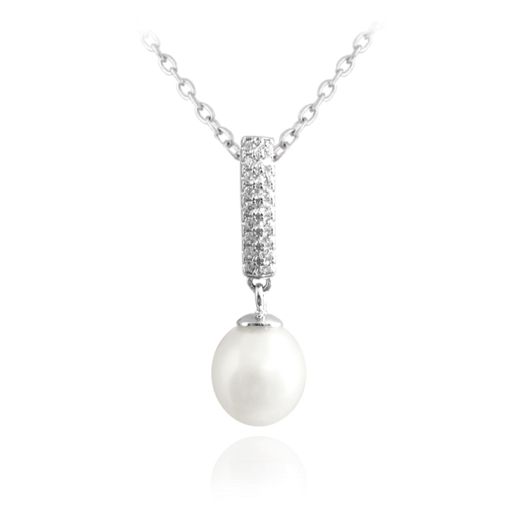 MINET Stříbrný náhrdelník přírodní bílé perly se zirkony