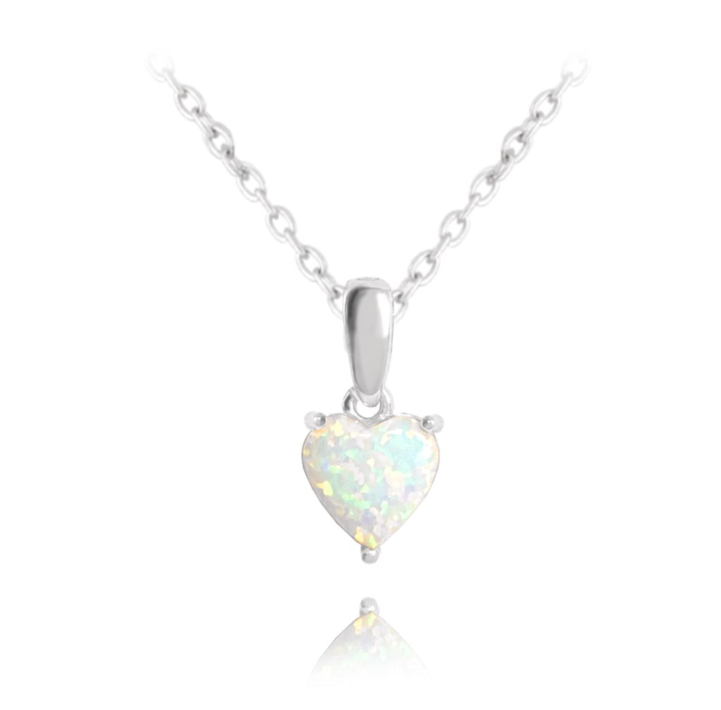 MINET Stříbrný náhrdelník SRDÍČKO s bílým opálkem