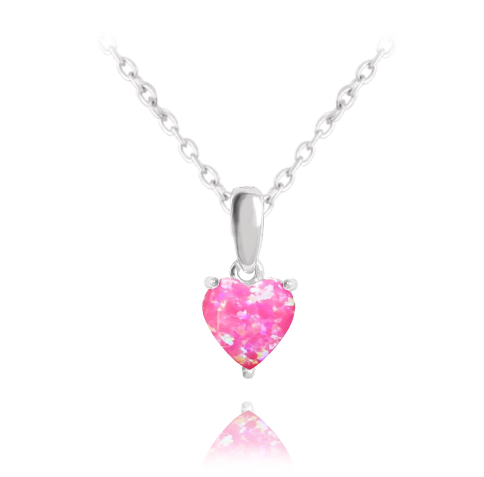 MINET Stříbrný náhrdelník SRDÍČKO s růžovým opálkem