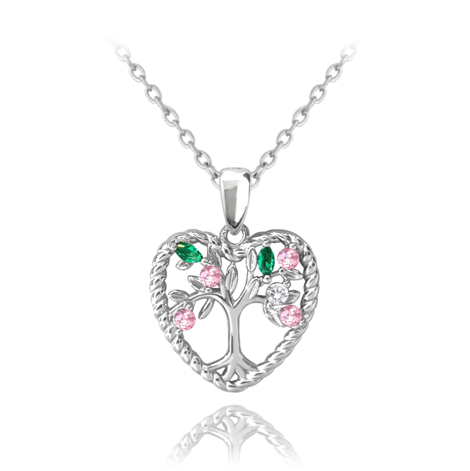 MINET Stříbrný náhrdelník STROM ŽIVOTA V SRDCI s barevnými zirkony