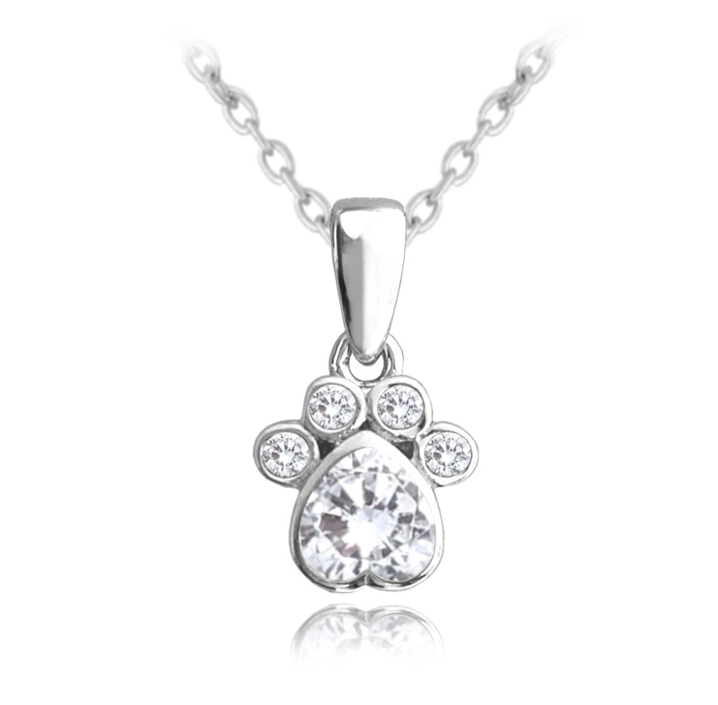 MINET Stříbrný náhrdelník TLAPKA s bílými zirkony