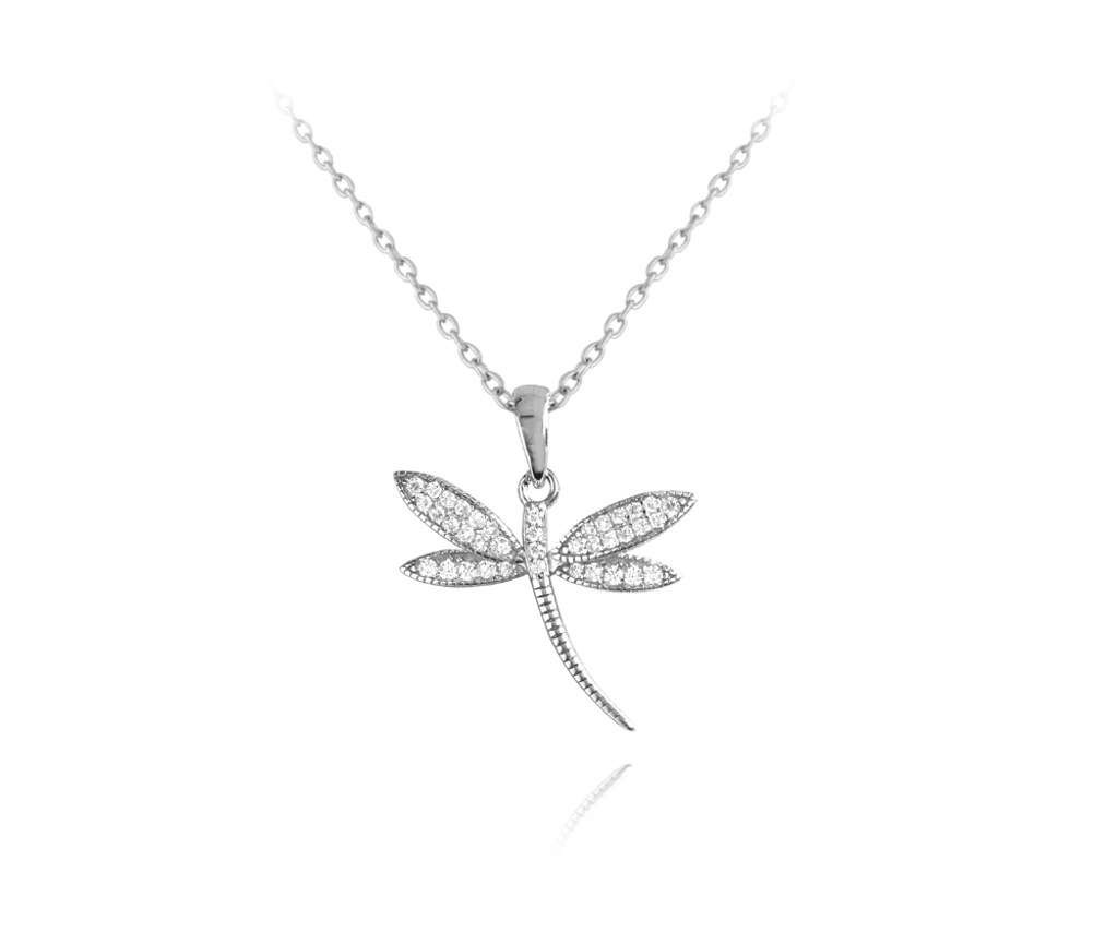 MINET Stříbrný náhrdelník VÁŽKA s bílými zirkony