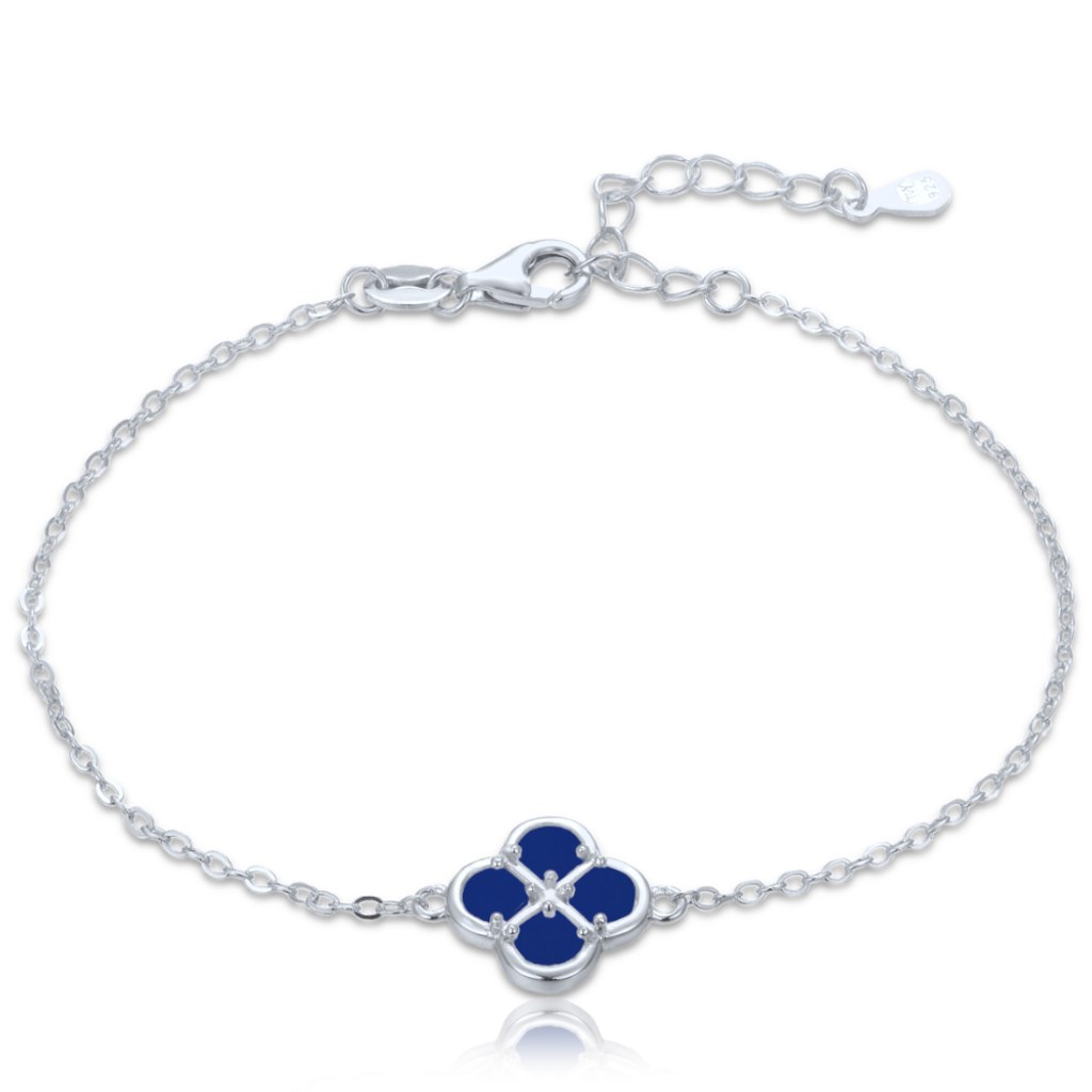 MINET Stříbrný náramek čtyřlístek s lapisem