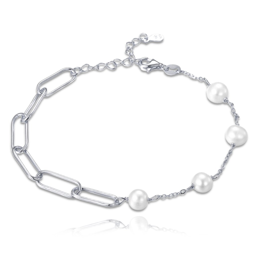 MINET Stříbrný náramek s přírodními perlami