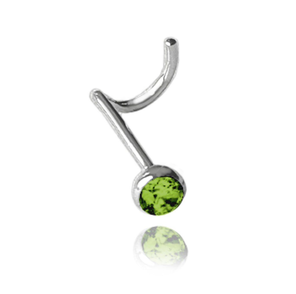 MINET Stříbrný piercing do nosu se zeleným zirkonem
