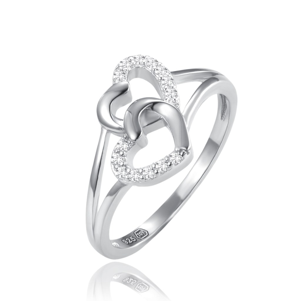 MINET Stříbrný prsten dvě srdce s bílými zirkony vel. 56