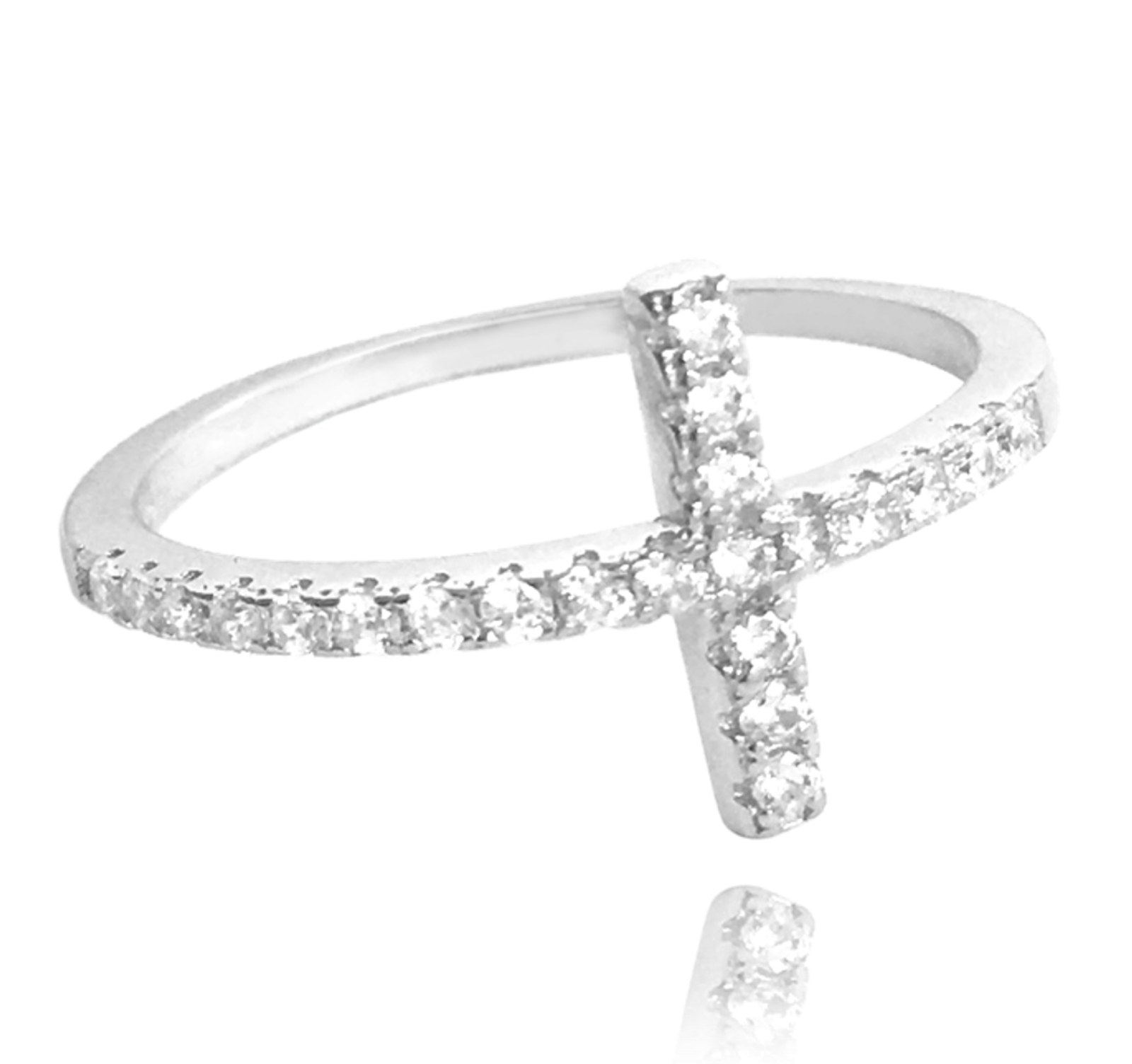 Prstýnkem se zirkony ve tvaru křížku dáte najevo, že módě rozumíte.