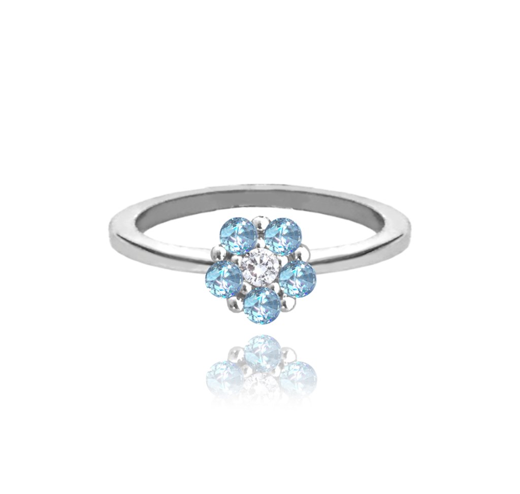 MINET Stříbrný prsten KYTIČKA se světle modrými zirkony vel. 46
