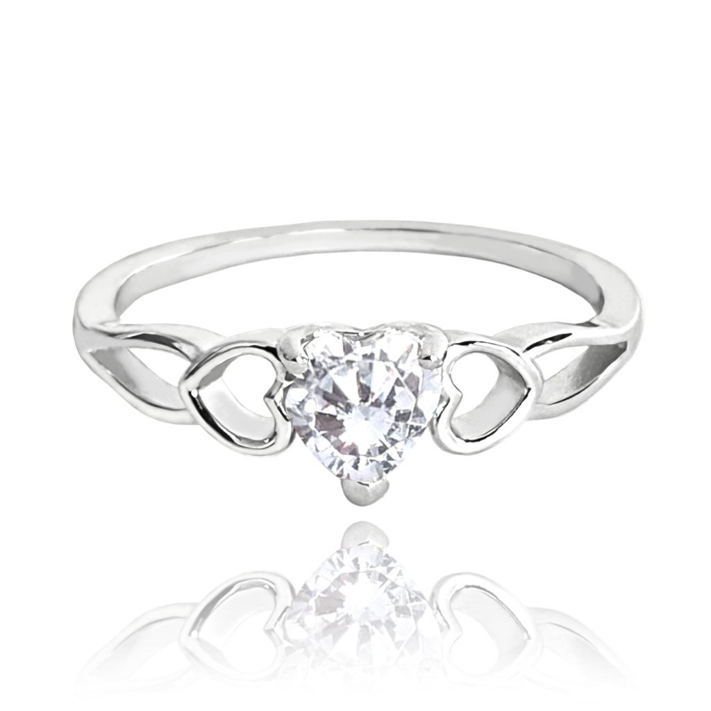 MINET Stříbrný prsten LOVE s bilým srdíčkovým zirkonem vel. 53