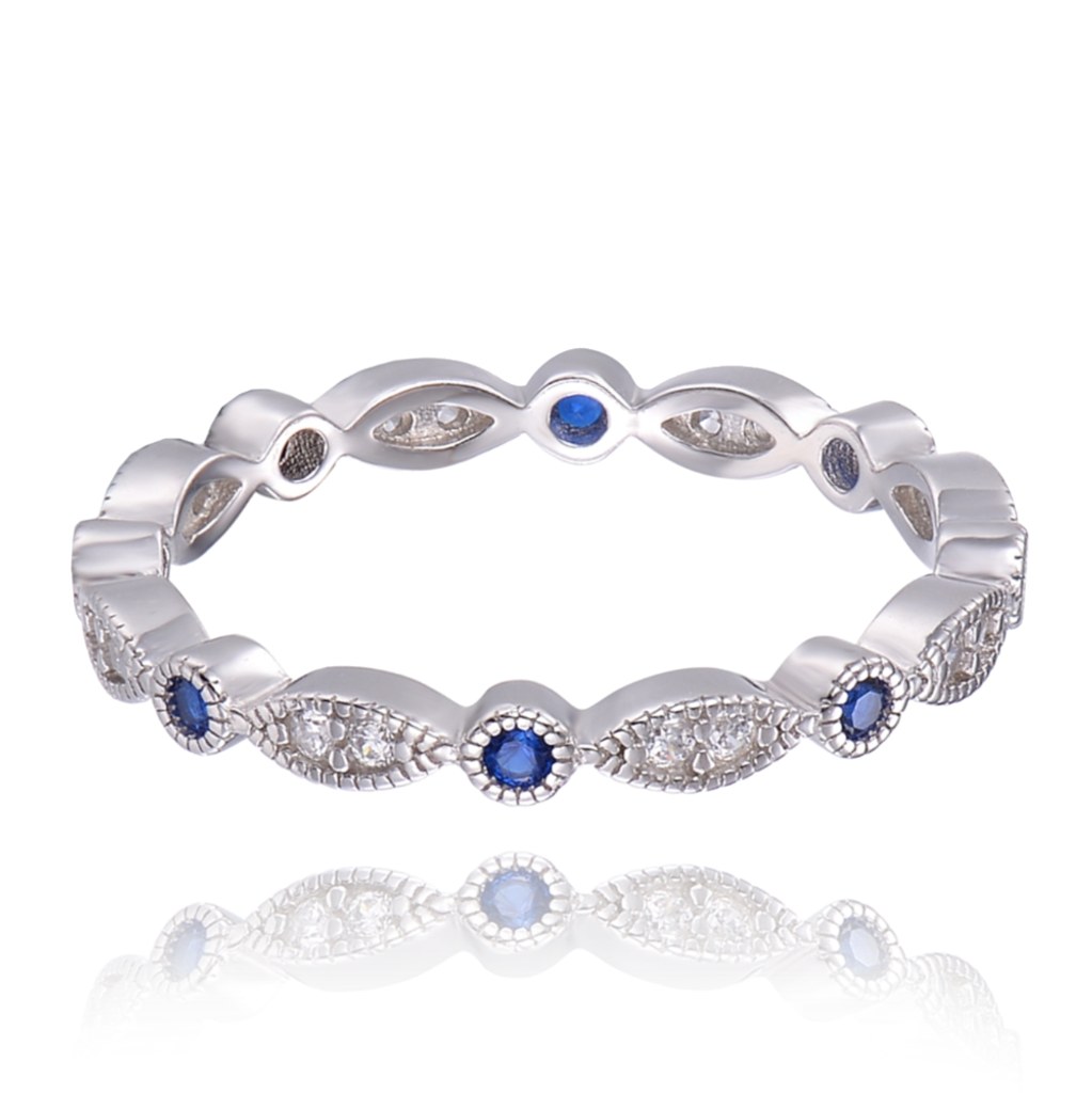 MINET Stříbrný prsten s modrými zirkony vel. 61