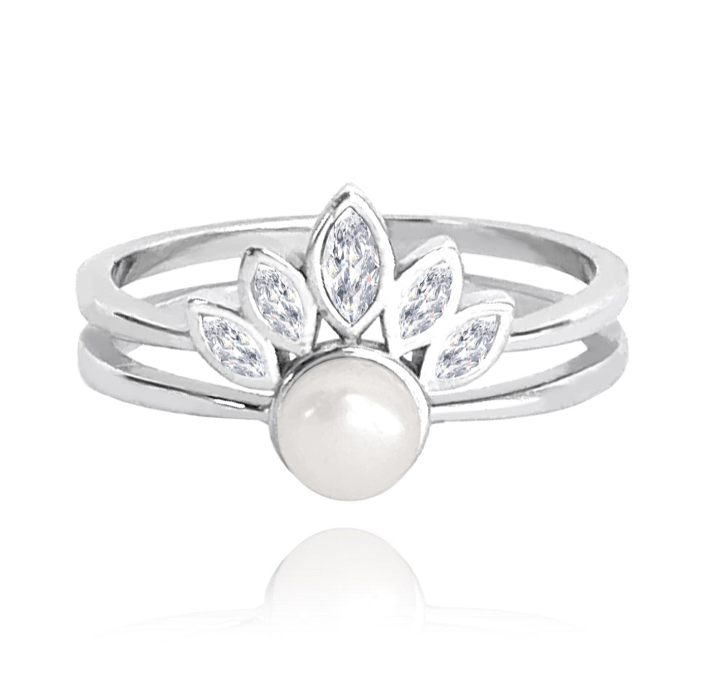 MINET Stříbrný prsten s perlou a bílými zirkony vel. 51