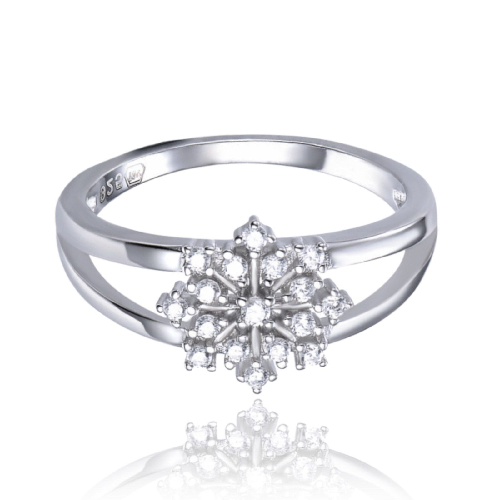 MINET Stříbrný prsten sněhová vločka s bílými zirkony vel. 55