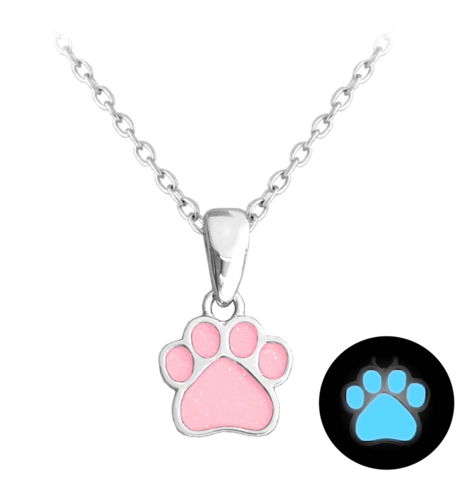 Stříbrné svíticí tlapky jsou vyrobeny z pravého rhodiovaného stříbra a dlouho si tak udrží svou barvu i lesk. Silver paws that also SHINE IN THE DARK? No, we're not kidding.