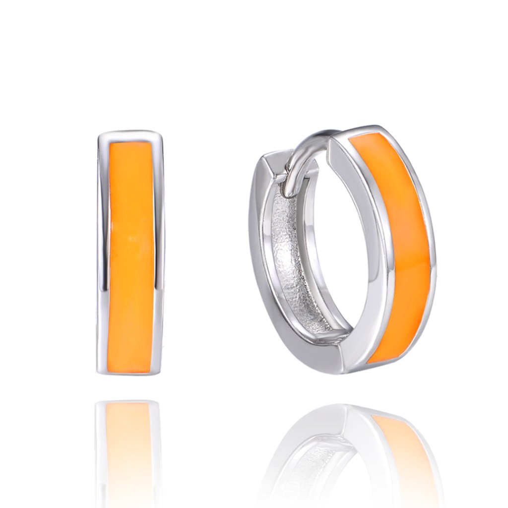 MINET Teen svítící oranžové stříbrné náušnice KROUŽKY