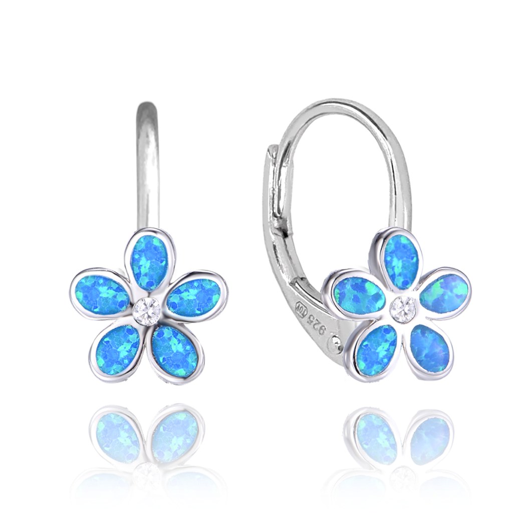 MINET Třpytivé stříbrné náušnice KYTIČKY s modrými opálky a zirkonem