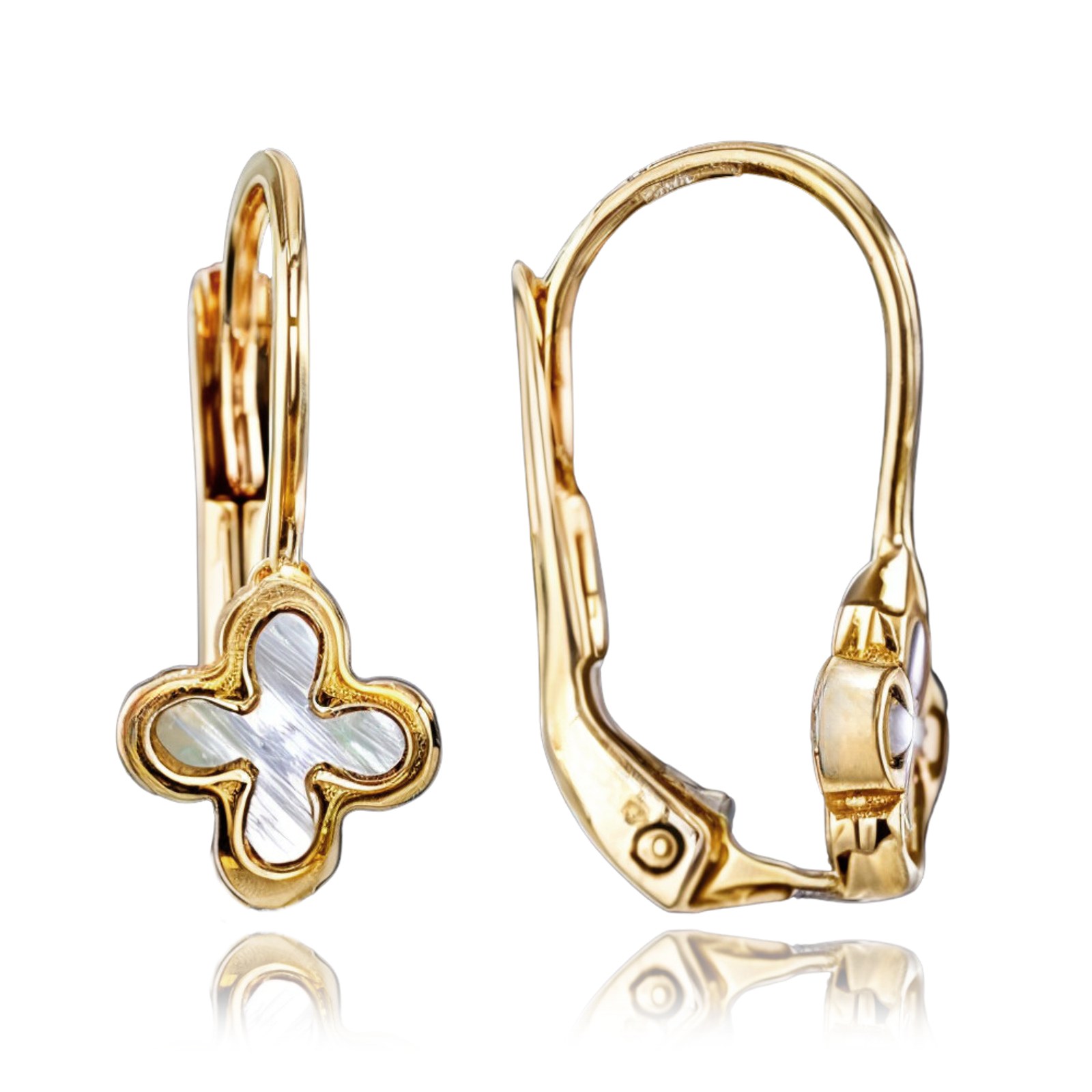 Originální náušnice z pravého 14karátového zlata s motivem čtyřlístku. Přírodní perleť je okouzlující, decentní, mimořádně vkusná a dodá vašemu celkovému vzhledu na eleganci. Náušnice oceníte při každodenním nošení i při výjimečných příležitostech. Kvalitního zpracování si všimnete hned po prvním nošení.
