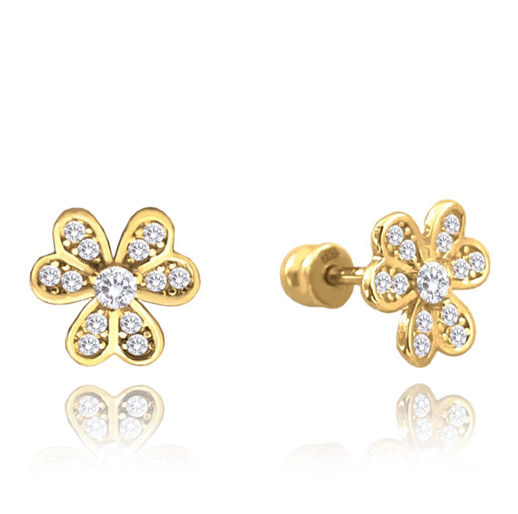 MINET Zlaté náušnice kytičky na šroubek s bílými zirkony Au 585/1000 1,45 g