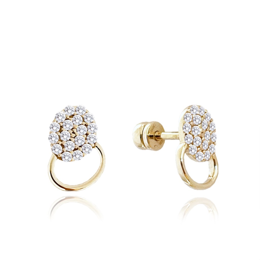 Decentní náušnice z pravého 14karátového zlata. Náušnice jsou zdobené bílými zirkony a jsou vhodné pro každodenní nošení i výjimečné příležitosti. Náušnice mají oblíbené zapínání na šroubek. Kvalitního zpracování si všimnete hned po prvním nošení.