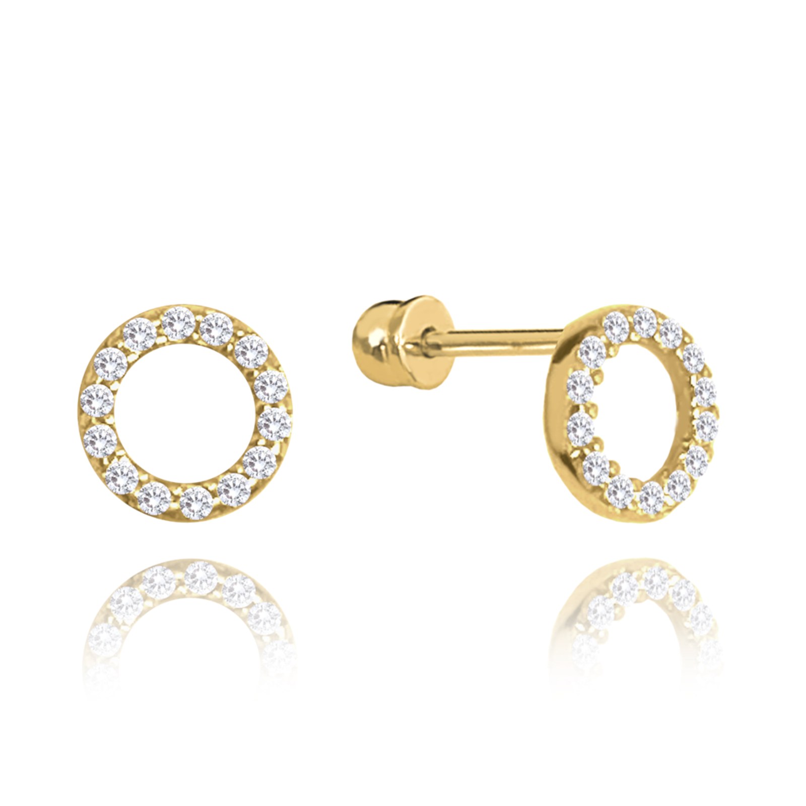Decentní náušnice z pravého 14karátového zlata. Náušnice jsou zdobené bílými zirkony a jsou vhodné pro každodenní nošení i výjimečné příležitosti. Náušnice mají oblíbené zapínání na šroubek. Kvalitního zpracování si všimnete hned po prvním nošení.