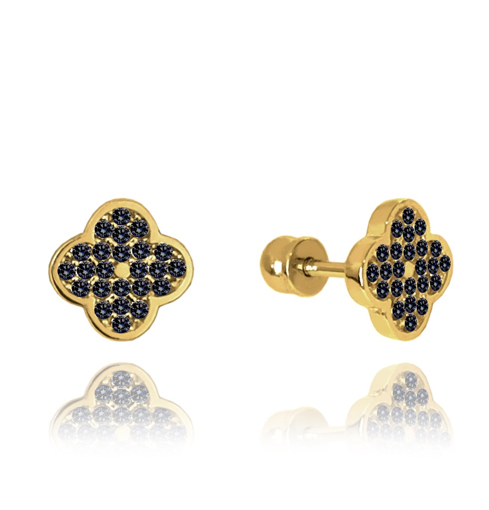 Decentní náušnice z pravého 14karátového zlata. Náušnice jsou zdobené černými zirkony a jsou vhodné pro každodenní nošení i výjimečné příležitosti. Náušnice mají oblíbené zapínání na šroubek. Kvalitního zpracování si všimnete hned po prvním nošení.