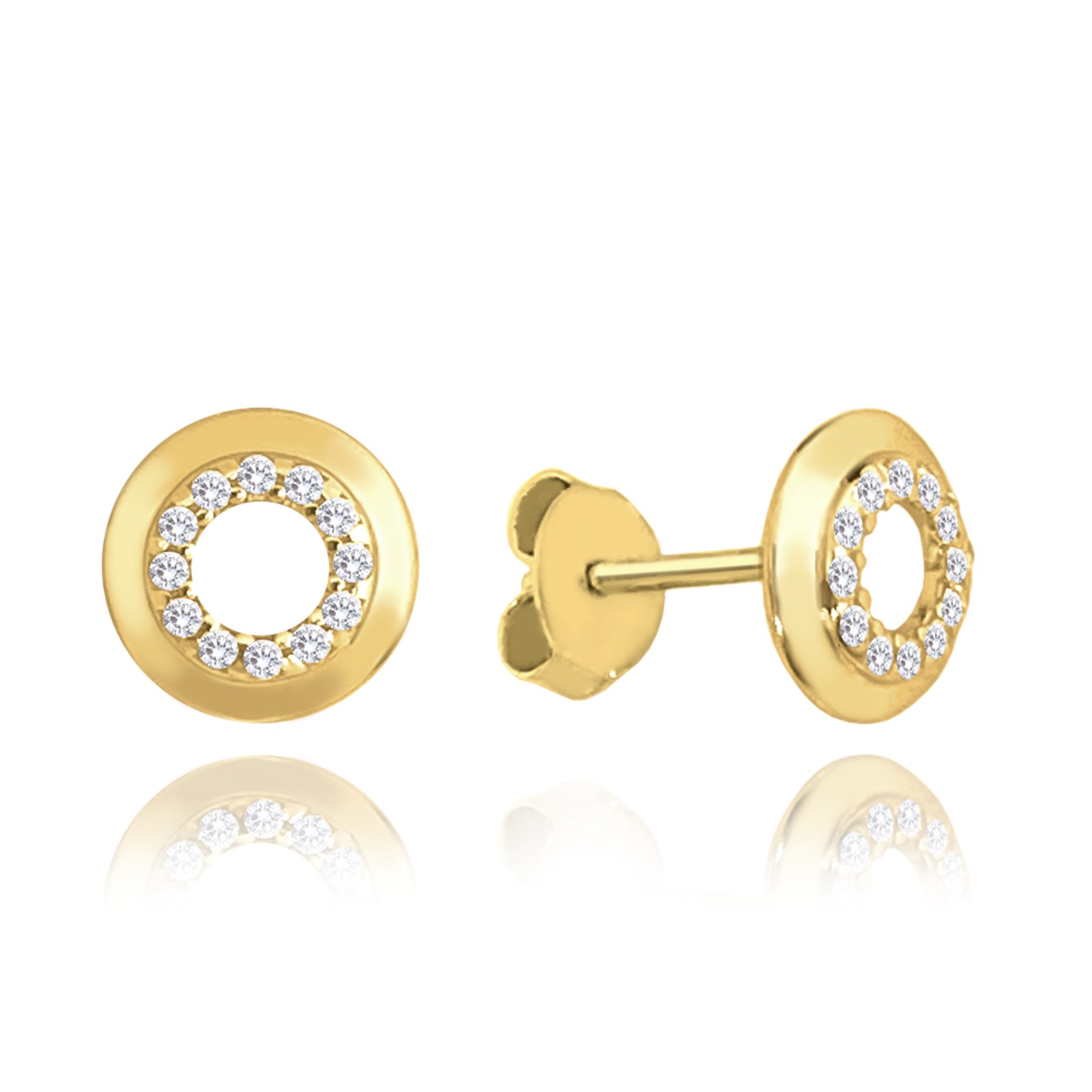Decentní náušnice z pravého 14karátového zlata. Náušnice jsou zdobené bílými zirkony a jsou vhodné pro každodenní nošení i výjimečné příležitosti. Tyčinka na zadní straně náušnic má 2 zářezy, které slouží jako pojistka proti ztrátě a také jako dvouúrovňová možnost zapínání. Kvalitního zpracování si všimnete hned po prvním nošení.
