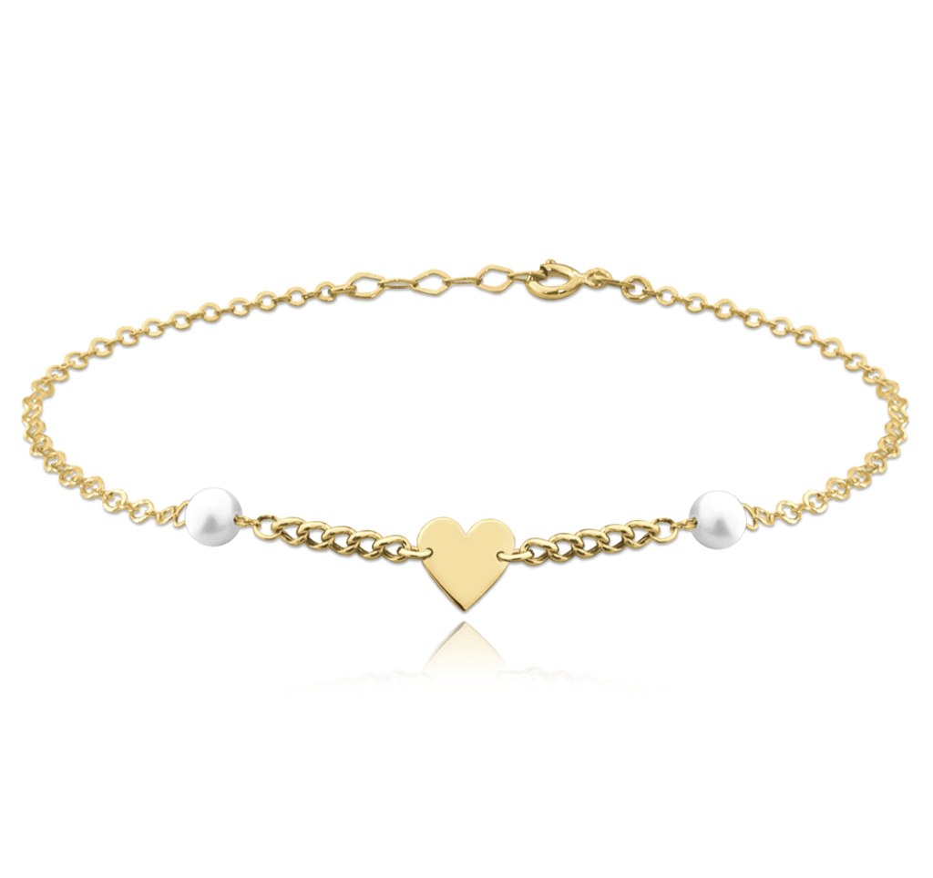 Elegantní náramek vyrobený z pravého zlata o ryzosti 585/1000. Náramek je ozdoben decentním srdíčkem, na které je možné gravírovat, a přírodními sladkovodními perličkami. Díky prodlužovacím očkům skvěle padne na zápěstí. Zlatý náramek je vhodným dárkem pro partnerku, maminku i přítelkyni.