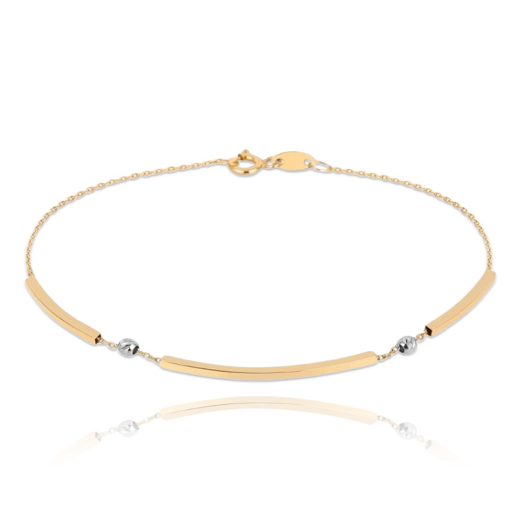 Elegantní náramek je vyrobený z pravého 14karátového zlata. Předností náramku je kombinace žlutého zlata a kuliček z bílého zlata.