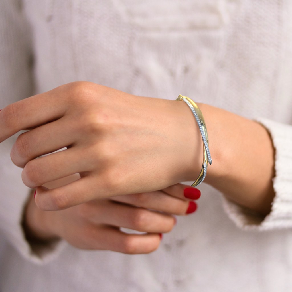 Elegantní náramek je vyrobený z pravého 14karátového zlata. Předností náramku je kombinace žlutého zlata a kuliček z bílého zlata.