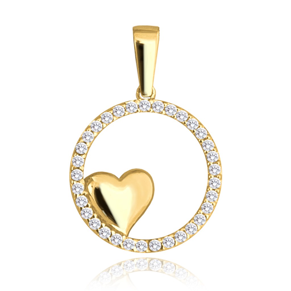 Zlatý 585/1000 přívěsek srdce se zirkony 3834