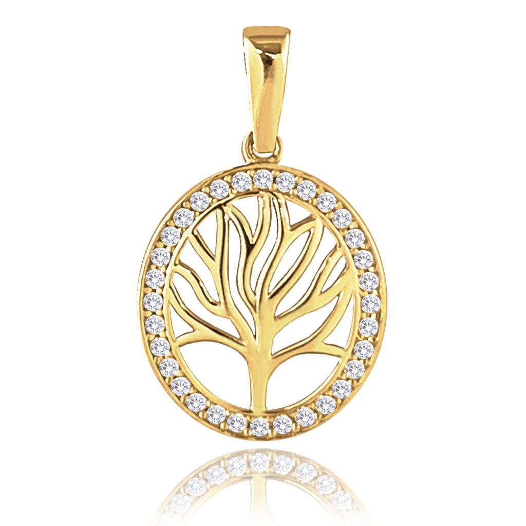 MINET Zlatý přívěs strom života s bílými zirkony Au 585/1000 1,55g