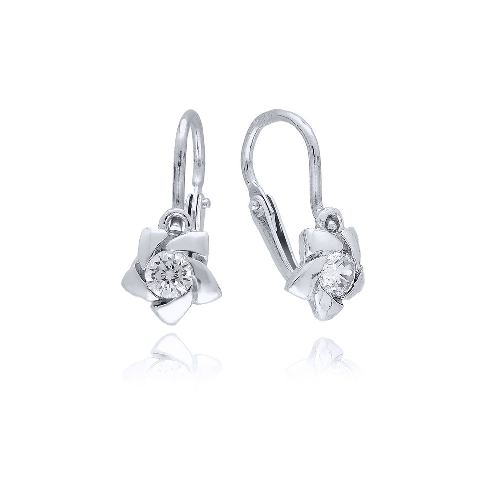 Zlaté 585/1000 záušnice z bílého zlata s kameny francouzské zapínání 6028Bn