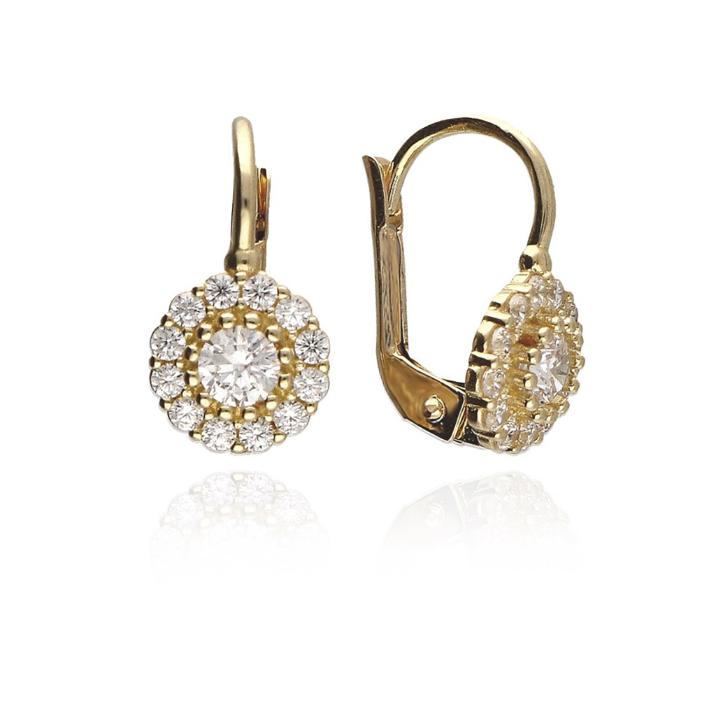 Zlaté 585/1000 náušnice kytičky se zirkonem 6019BK