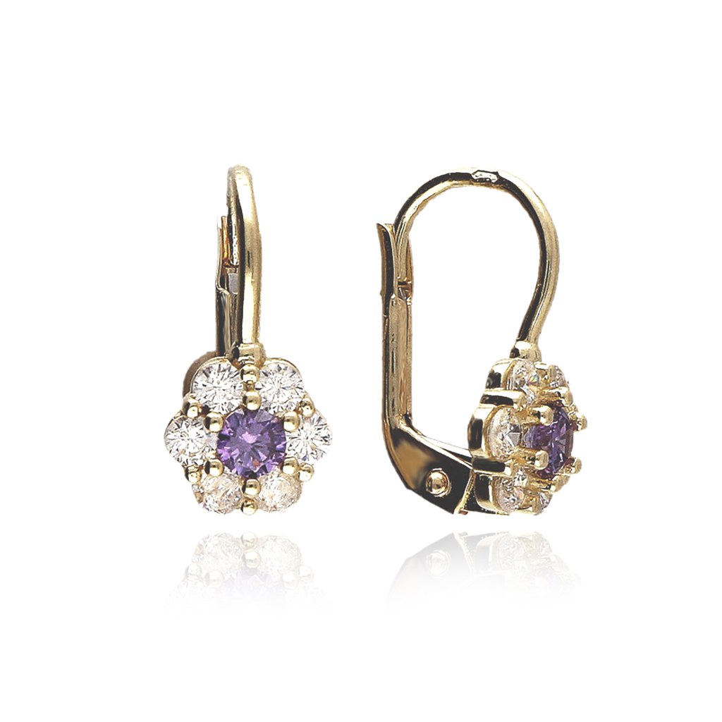 Zlaté 585/1000 dětské náušnice z bílého zlata kytičky se zirkonem 6040AB