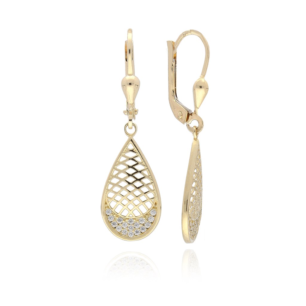 Zlaté 585/1000 náušnice se zirkony - klapkové TU-3027