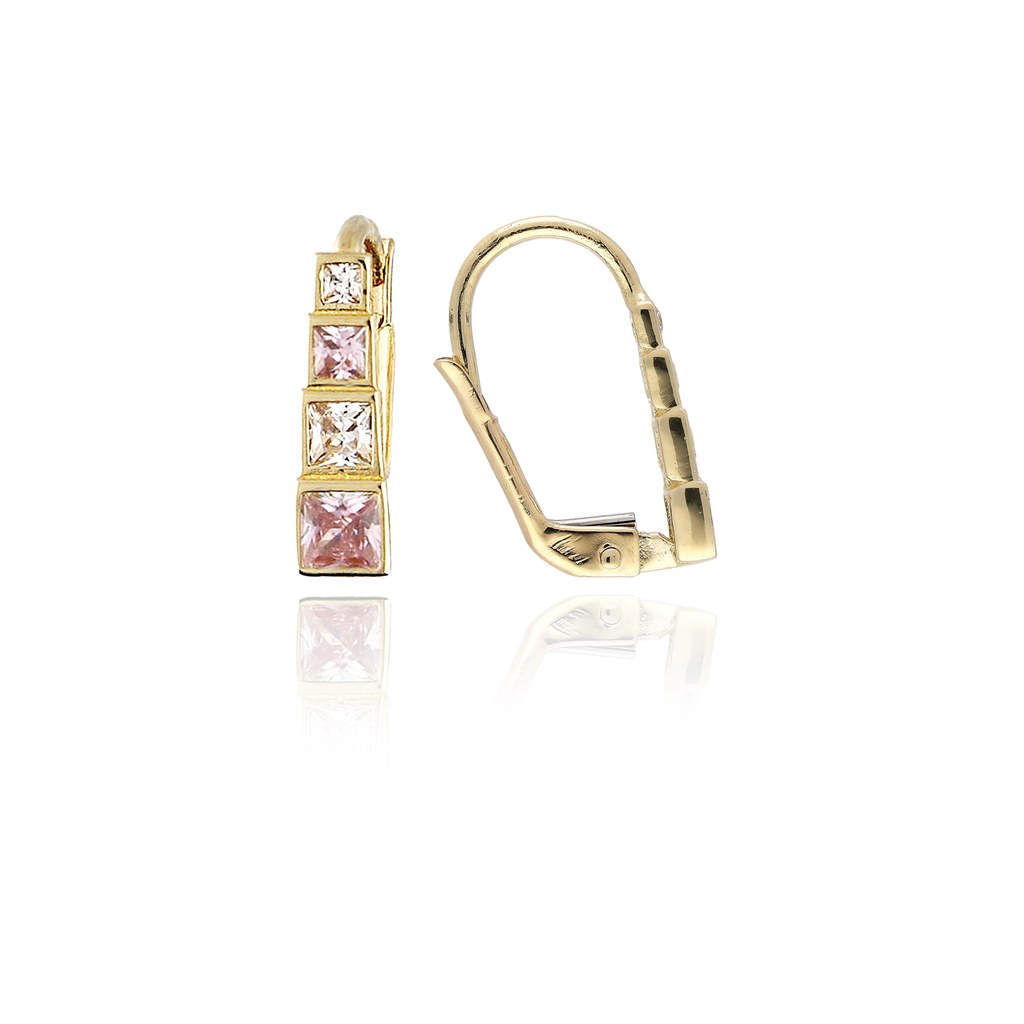 MINET Dětské zlaté náušnice s předním zapínáním srdíčka s bílými zirkony Au 585/1000 1,15g