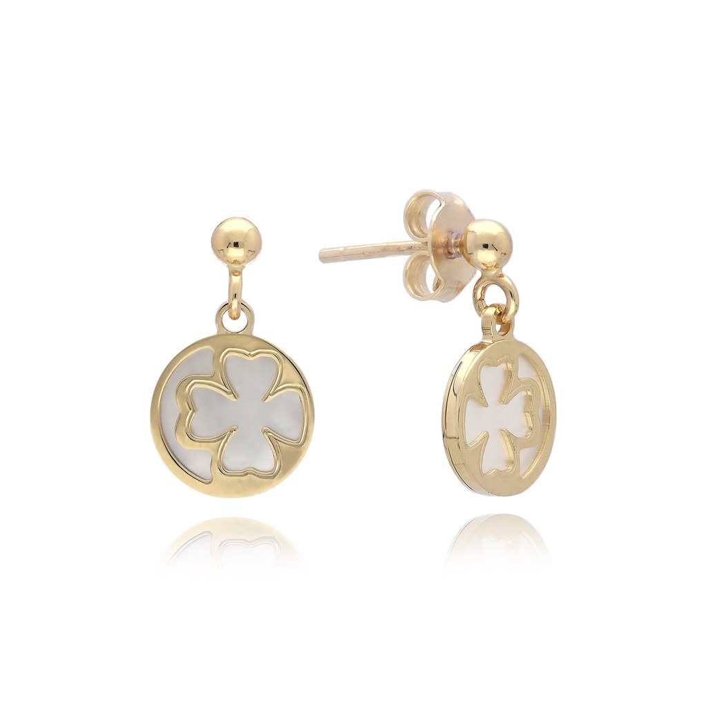 MOISS náušnice ze žlutého zlata ČTYŘLÍSTEK