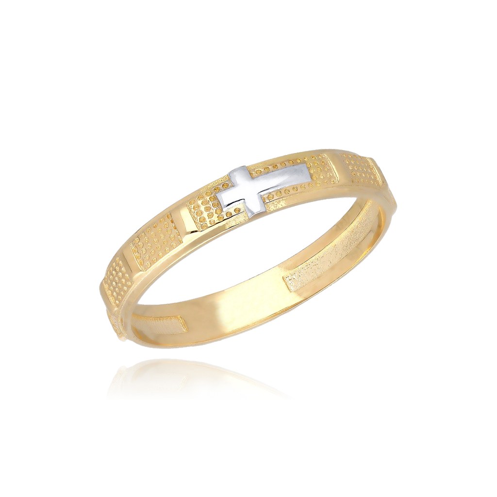 MOISS prsten ze žlutého zlata KŘÍŽEK BICOLOR