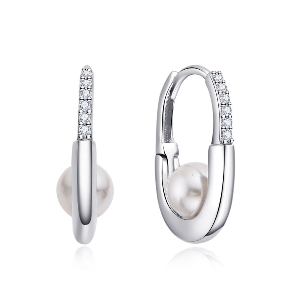 MINET Elegantní stříbrné náušnice kroužky s bílým zirkonem